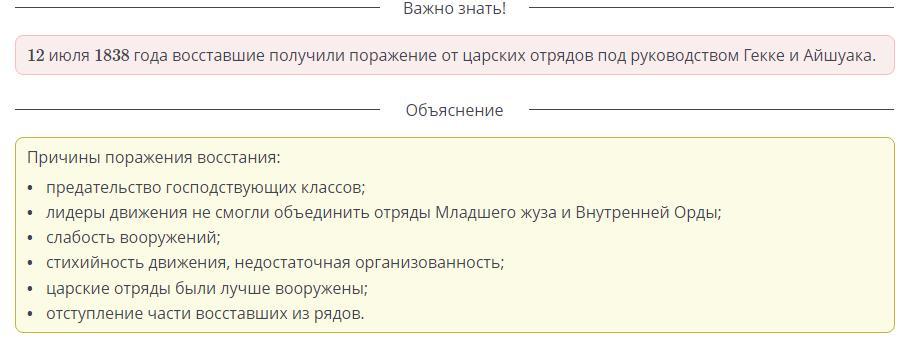 слабость вооружений,лидеры движения не смогли объединить отряды Младшего жуза и Внутренней Орды