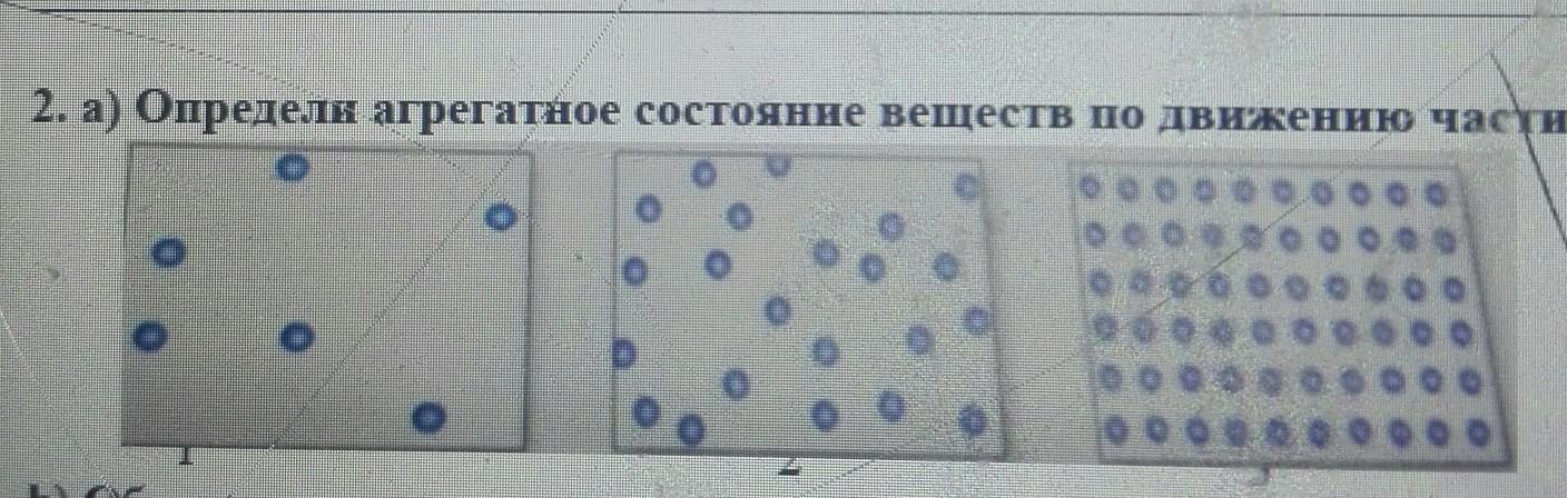 2. а) Определи агрегатное состояние веществ по движению частиц пожалуиста помогите срочно