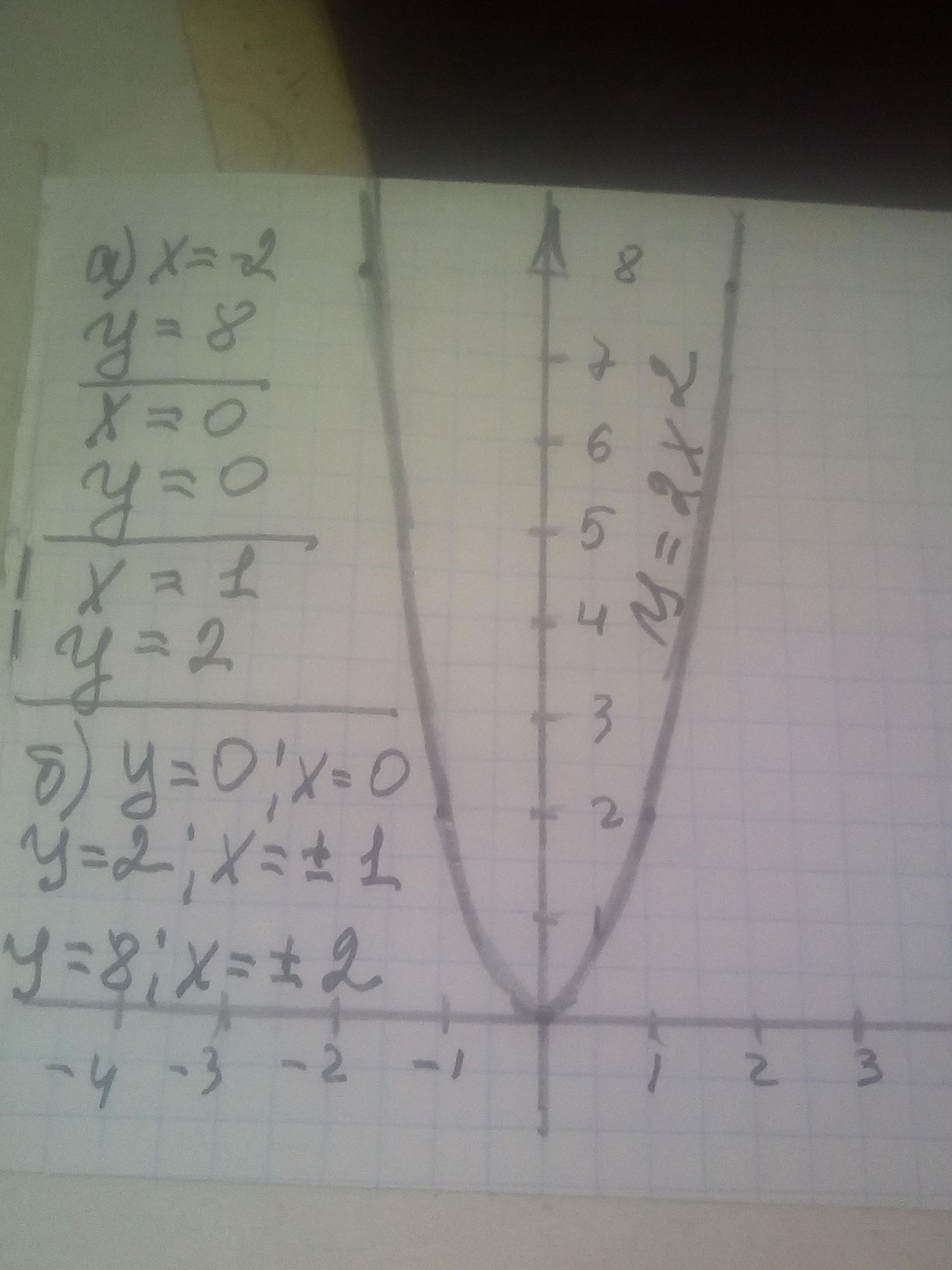 3. Построй график функции y = 2х^2. С помощью графика найди: