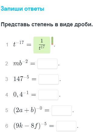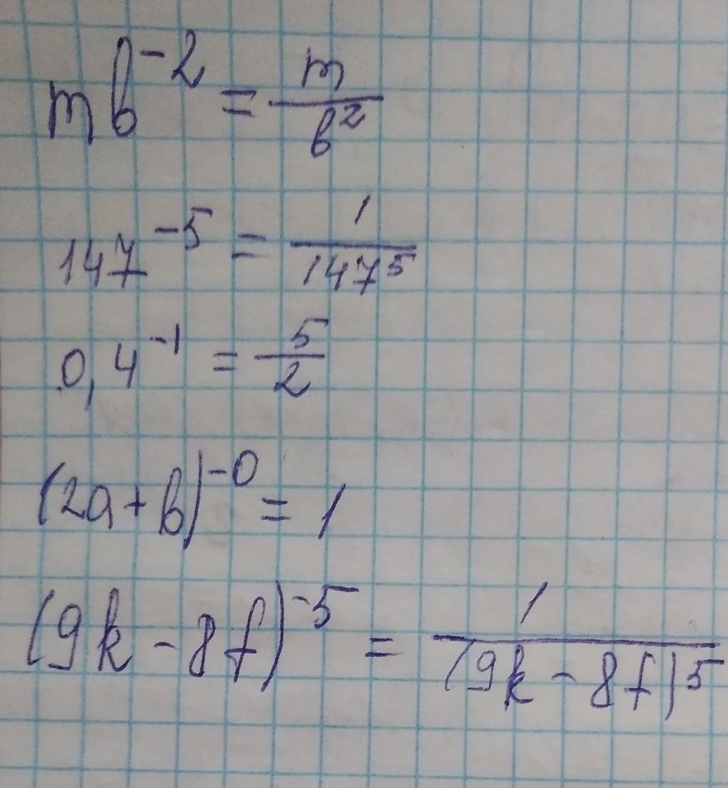 Эти примеры решены с помощью формулы а^-n=1/a^n