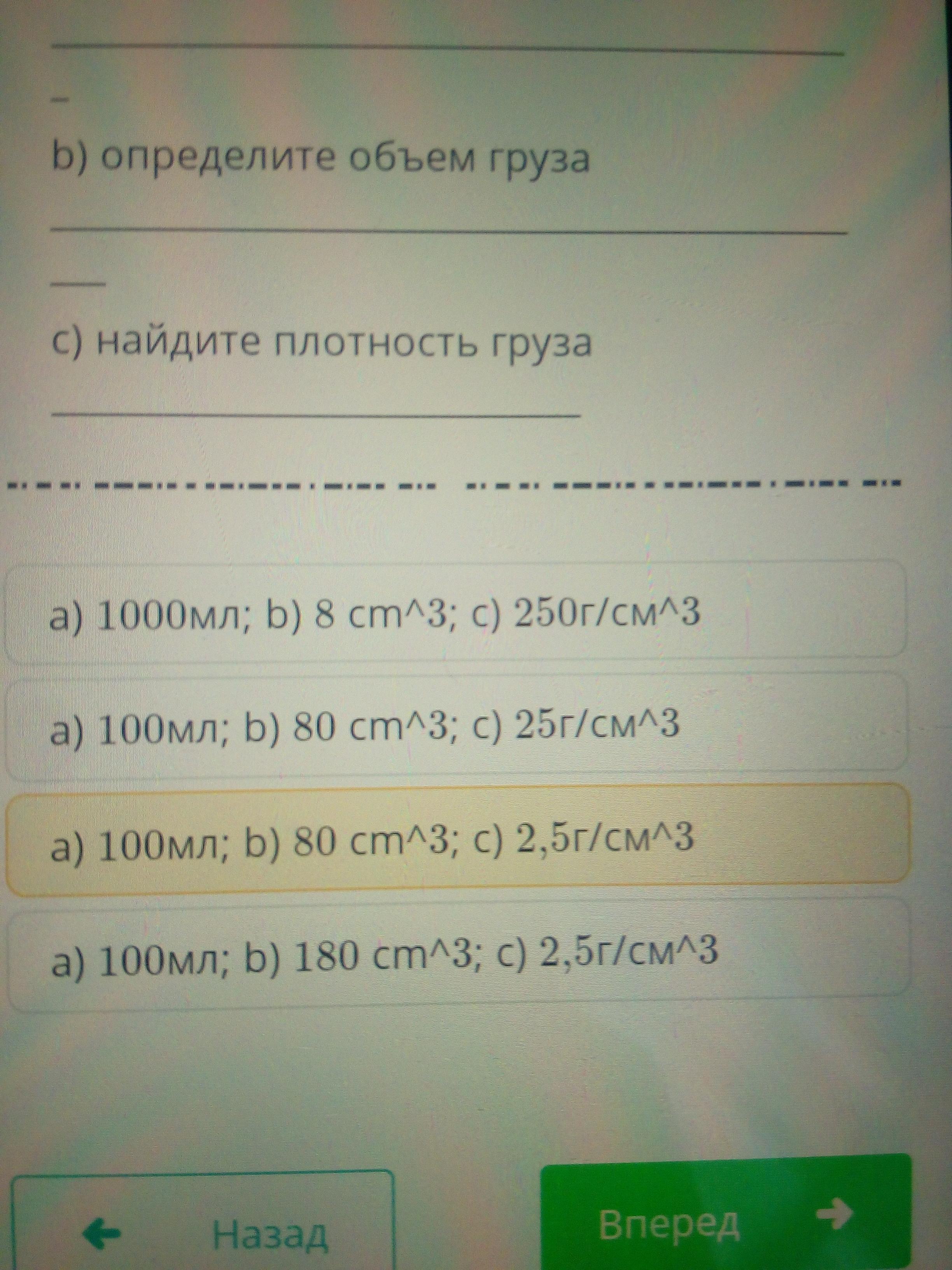 b) 100мл; b) 180 cm; c) 2,5т/см