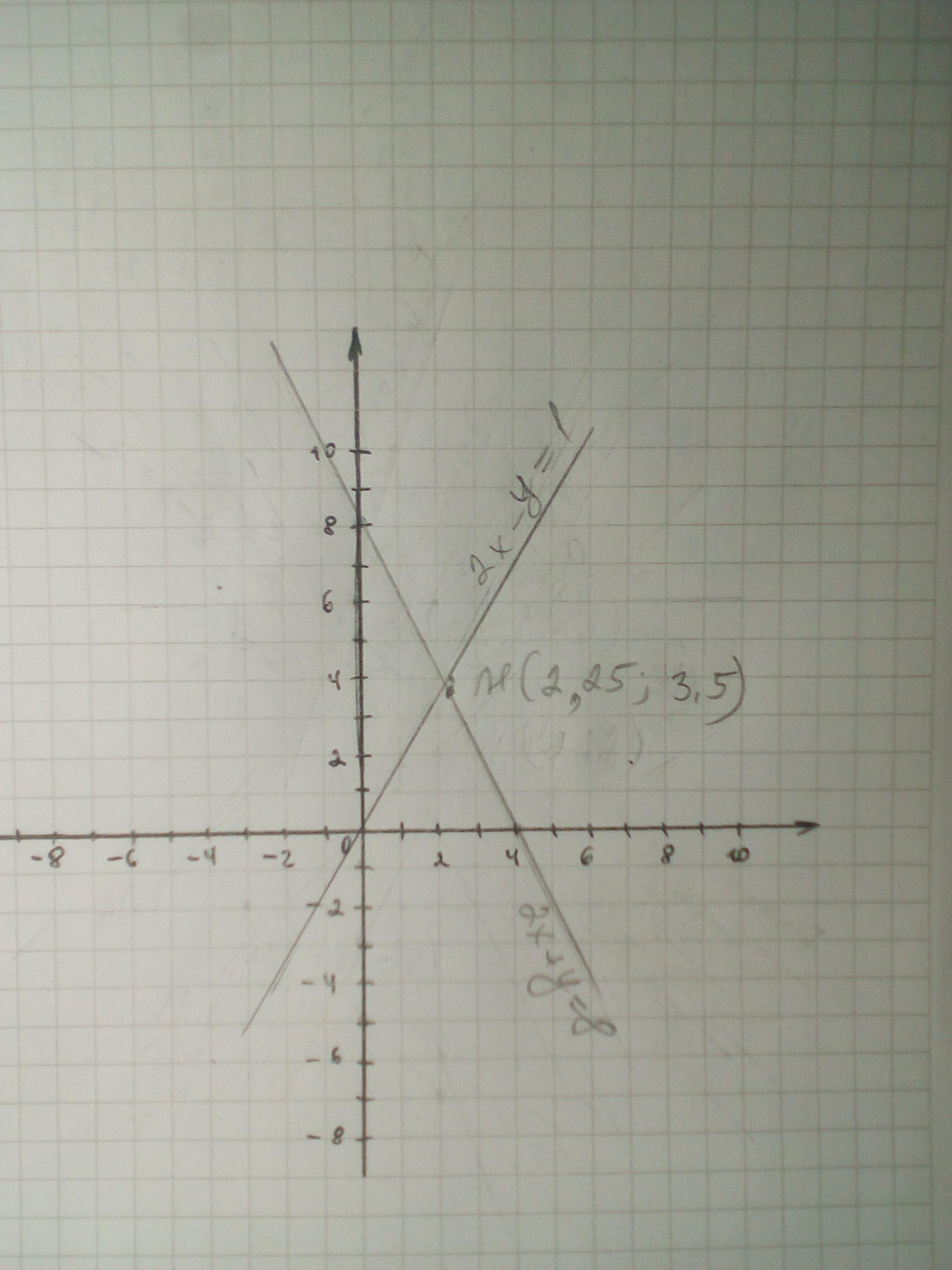 2х+у=8; у=8-2х; х=0 у=8; х=4 у=0