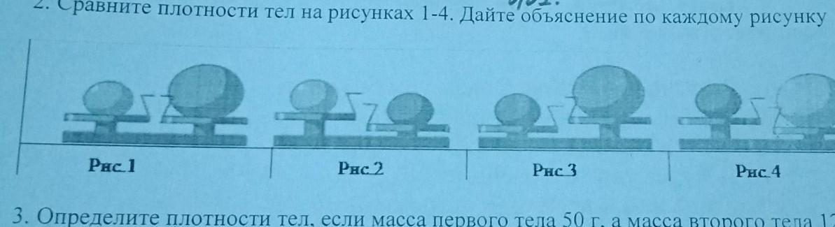 сравните плотности тел на рисунках 1-4. Дайте объяснение по каждому рисунку. ППЖЖЖ ПОМОГИТЕ ПОЖАЛУЙСТА ДАМ 50