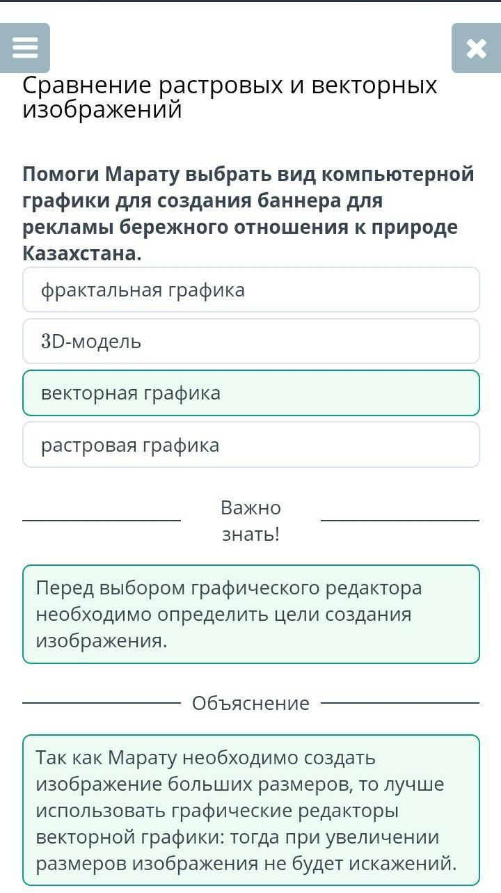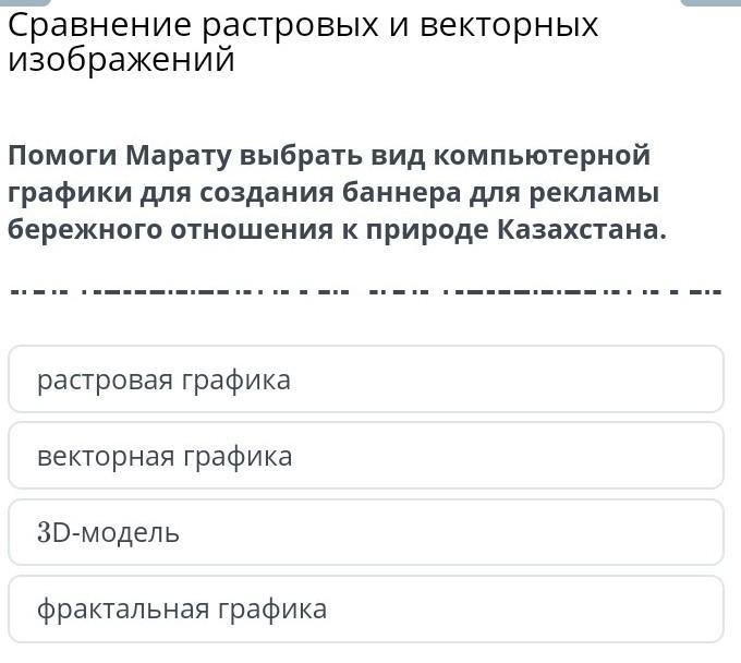 Помоги Марату выбрать вид компьютерной графики для создания баннера для рекламы бережного