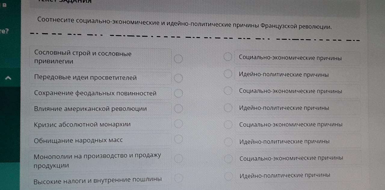 Соотнесите социально-экономические и идейно-политические причины Французской революции.