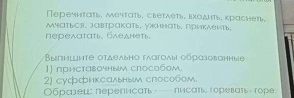 помогите срочно пожалуйста это нужно срочно решить срочно срочно срочно нужен ответ ГЛАГОЛЫ НУЖНО РАСКИДАТЬ ЧТО ОНИ ОБОЗНАЧАЮТ НАПРИМЕР СУФИКСАЛЬНЫЙ, ПРИСТАВОЧНО СУФИКСАЛЬНЫЙ И ТД
