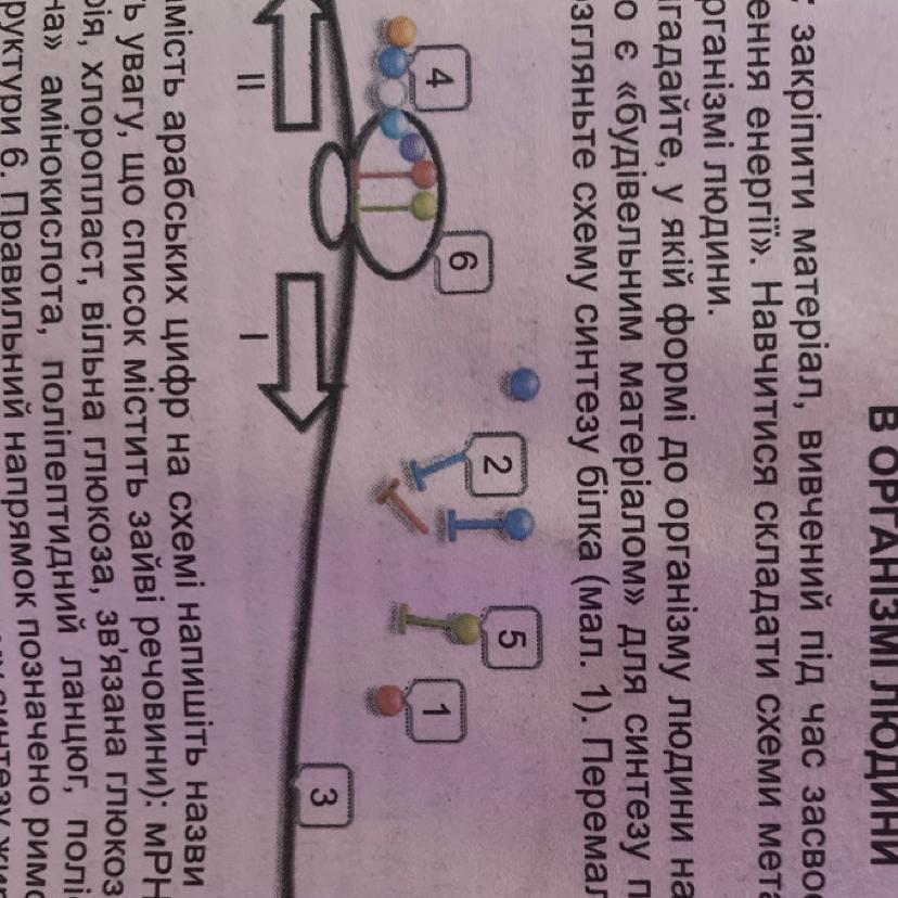 2. Замість арабських цифр на схемі напишіть назви речовин і структур зі списку