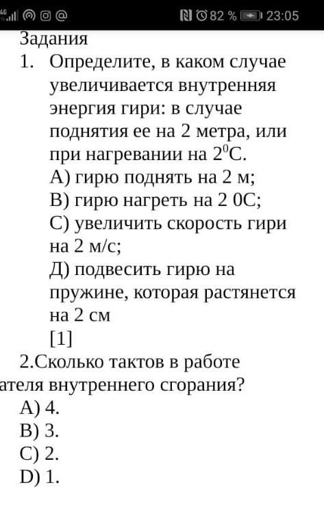 1. Внутренняя энергия увеличится при нагревании на 2 градуса, так как внутренняя энергия зависит от температуры, ответ В)