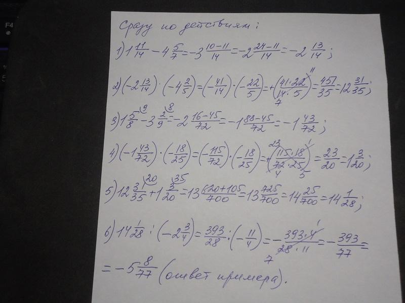 [(1 11/14-4 5/7)×(-4 2/5)+(1 5/8-3 2/9)×(-18/25)]:(-2 3/4)