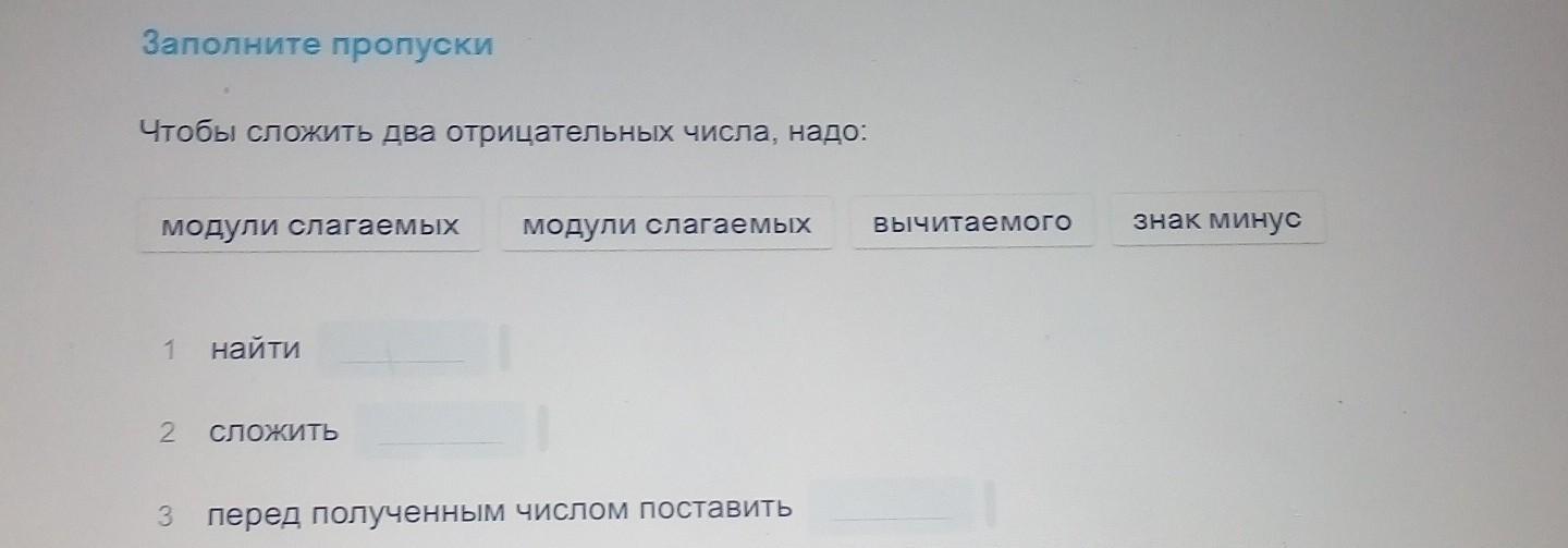 это теория, сначала модули слагаемых находим, потом эти самые модули слагаемых слагаем и в конце ставим минус