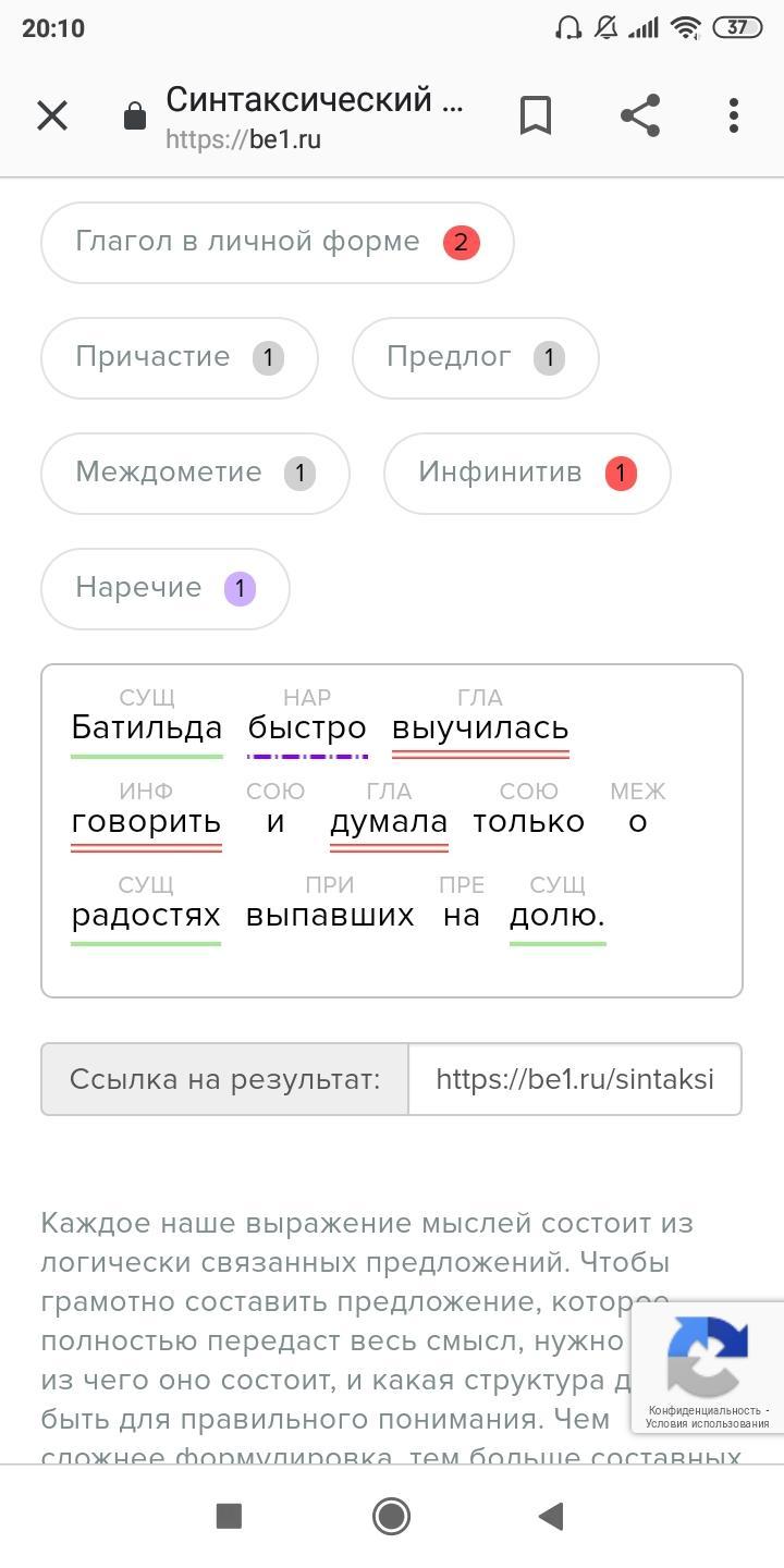 Синтаксический разбор: Батильда быстро выучилась говорить и думала только о радостях выпавших на её долю.