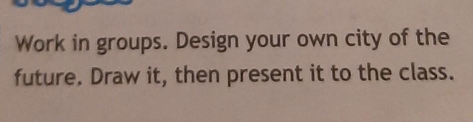 Тебе нужно описать описать и нарисовать свой город в будущем и показать его классу.