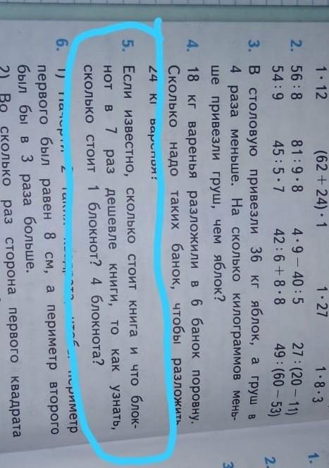 x разделить на 7 = x столько стоит 1 блокнот и это число умножить на 4.