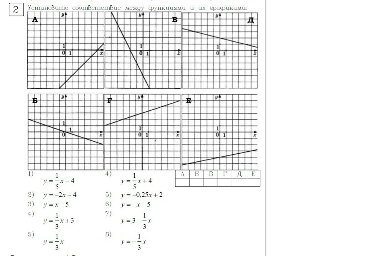 Д(5) №5 из второго столбика, у=1/3 х нет графика.