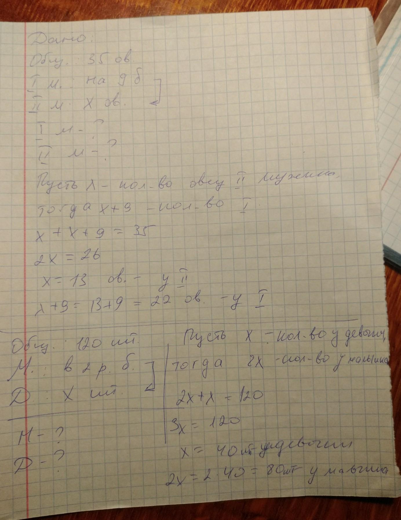 Ответ:у одного мужика-22 овец у другого 13