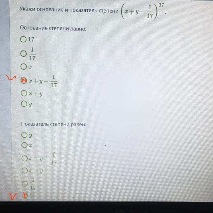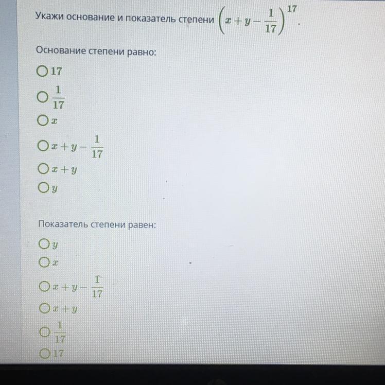 1)х+у-1/17-основание степени