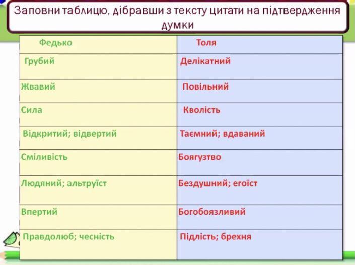 !!! Срочно!!!заповни таблицю дібравши з тексту цитати для підтвердження думки федько халамидник