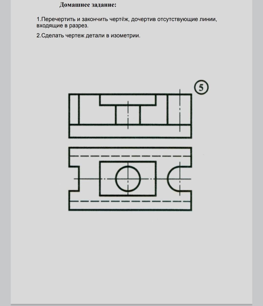Чертёж и изометрия выполнялись от руки с сохранением пропорций на глаз. Вам необходимо повторить построение изометрии детали по размерам, с помощью которых вы строили изображение вида спереди и вида сверху.