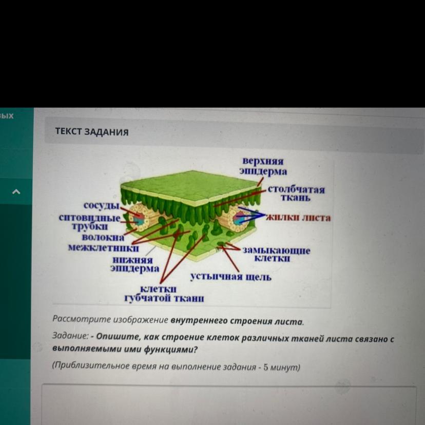 Задание: - Опишите, как строение клеток различных тканей листа связано с