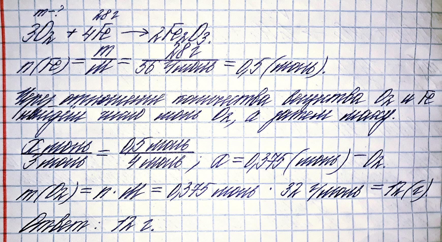 определите массу кислорода, который вступит в реакцию с 28 Г железа с образованием оксида железа (3)