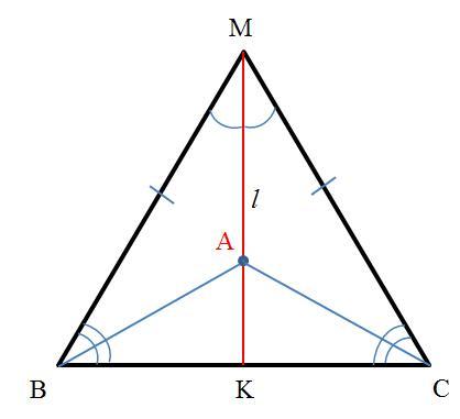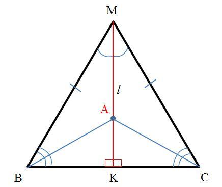4. В треугольнике ВМС стороны ВМ и МС равны, точка А лежит на биссектрисе МК, Докажите, что АВ= АС.