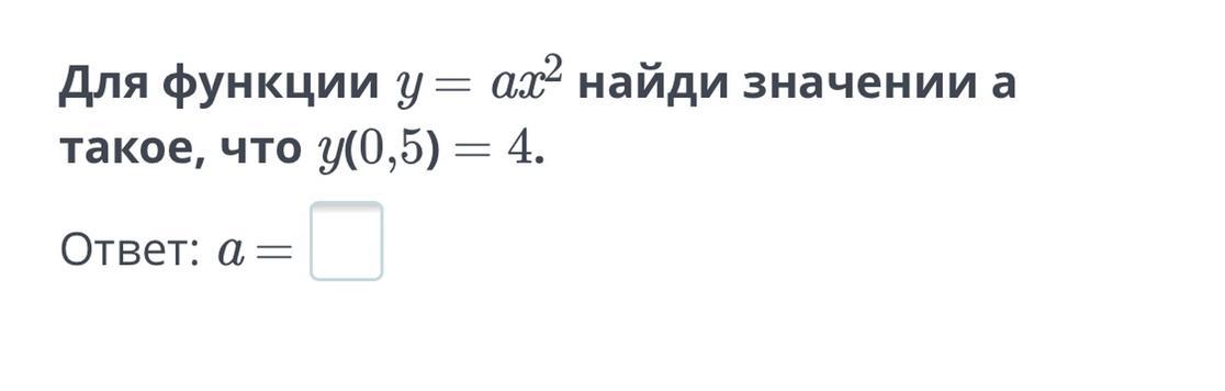 Для функции y= ax2 найди значении а такое, что y(0,5)=4