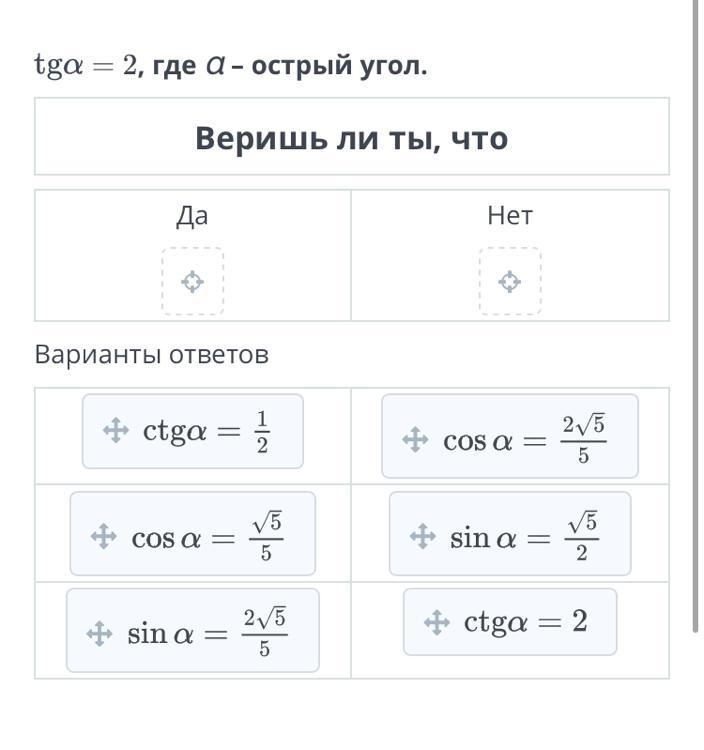 если tga=2,значит чтобы получить ctga надо просто 1:2/1, то есть просто его повернуть- 2/1=1/2