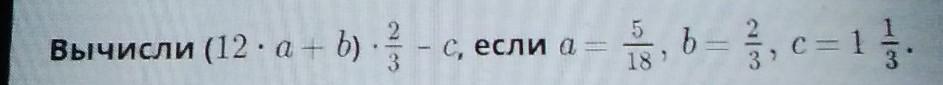 12 * а + b) * 2/3 - С, если а = 5/18, б = 2/3, с = 1 1/3