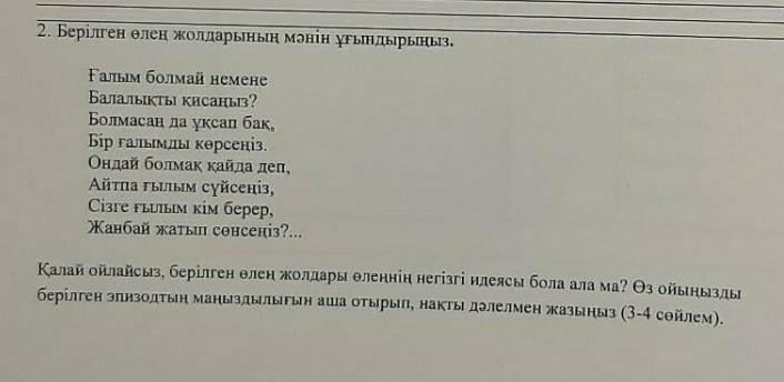 Егер сіз жастайыңыздан ғалым болатын болсаңыз,онда балалықпен қоштасуыңызға тура келеді.Бірақ өзіңізді ғалым бола алмаймын деп айтуыңызға болмайды.Себебі іштей сескеніп,күмәнданып,өзіңізді төменсітіп тастайсыз.Сондықтан адам тек биікке ұмтылуы керек.Әрдайым ізденімпаз бола білсе ғана нағыз ғалым бола алады деп ойлаймын.