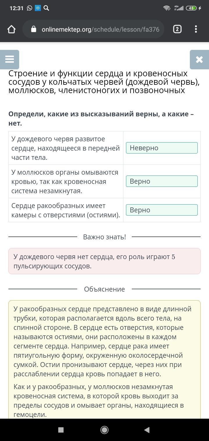 дождевого червя развитое сердце, находящееся в передней части тела.