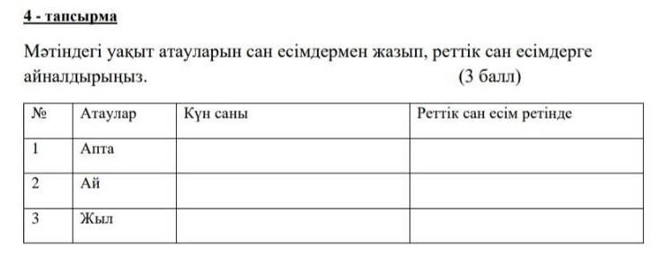 Мәтіндегі уақыт атауларын сан есімдермен жазып, реттік сан есімдерге