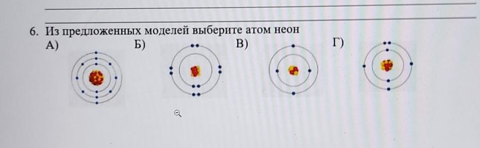 СРОЧНО ПОЖАЛУЙСТА ПОМОГИТЕТ 6. Из предложенных моделей выберите атом неон