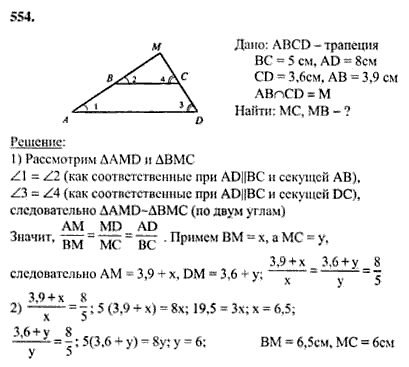 Тогда МВ:МА=х:(х+3,6)=5:8 ⇒ х=6 ⇒ МВ=6 см