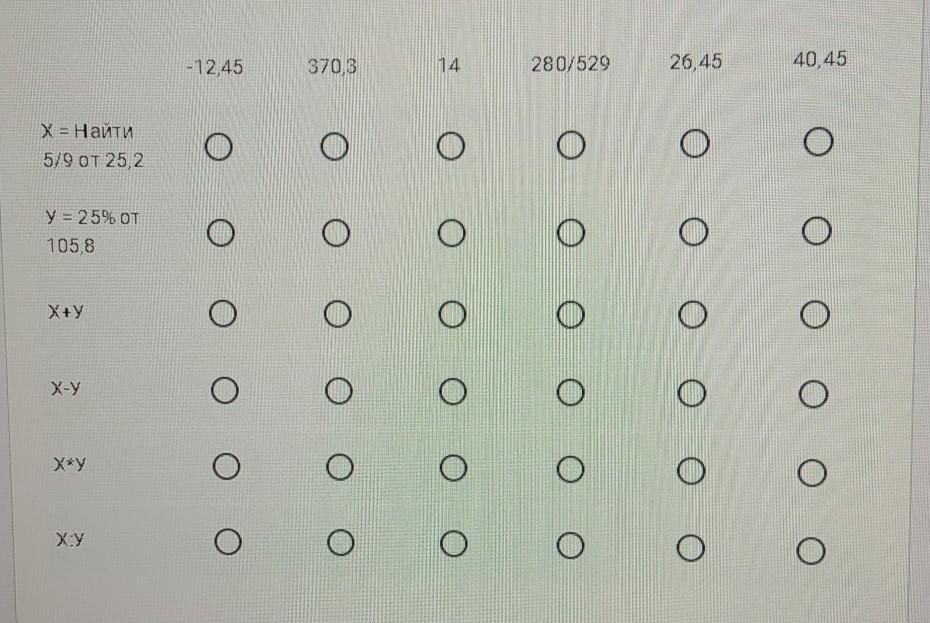 Пошаговое объяснение: x= 25.2:9*5=14 y=105,8:100*25=26,45