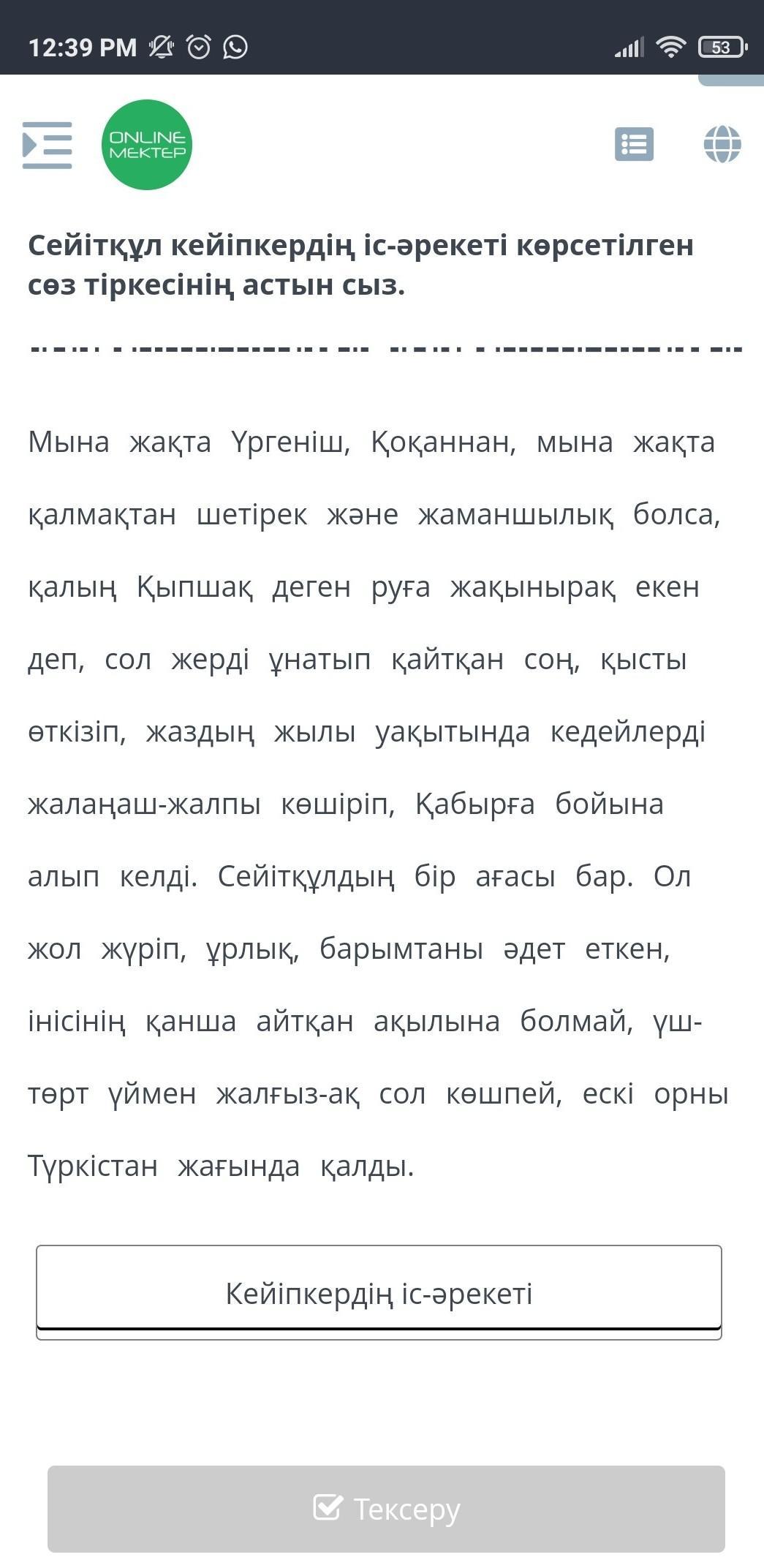 Сейітқұл кейіпкердің іс әрекеті көрсетілген сөз тіркесінің астын жаз