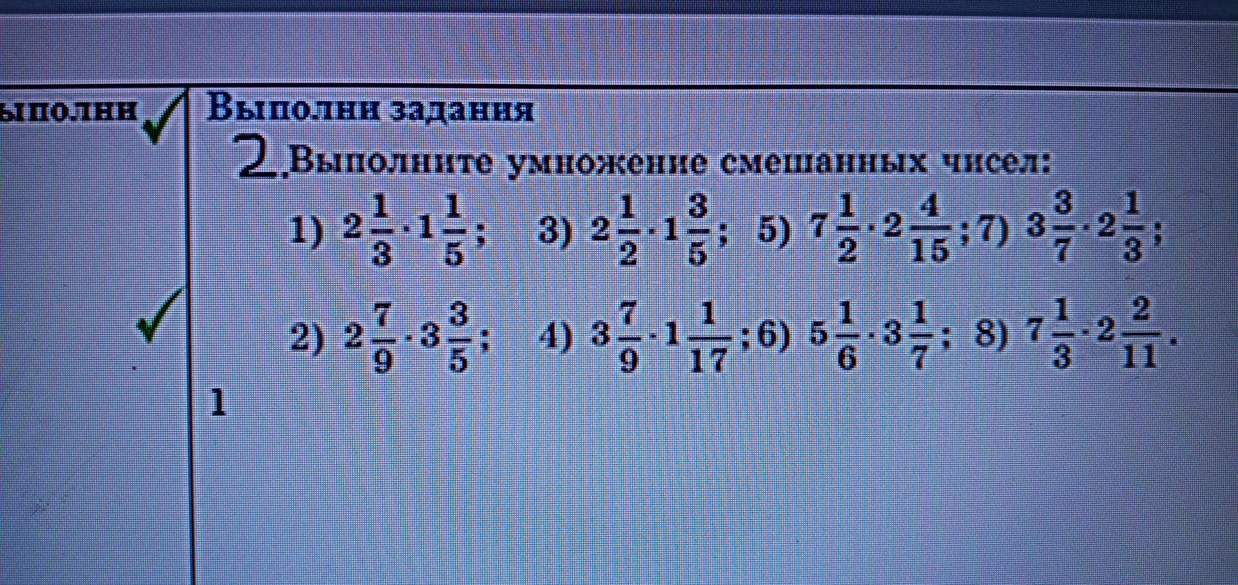 1) 2 1/3 * 1 1/5 = 2 4/5