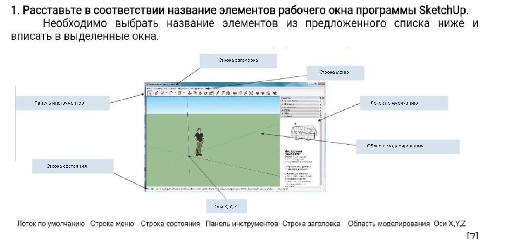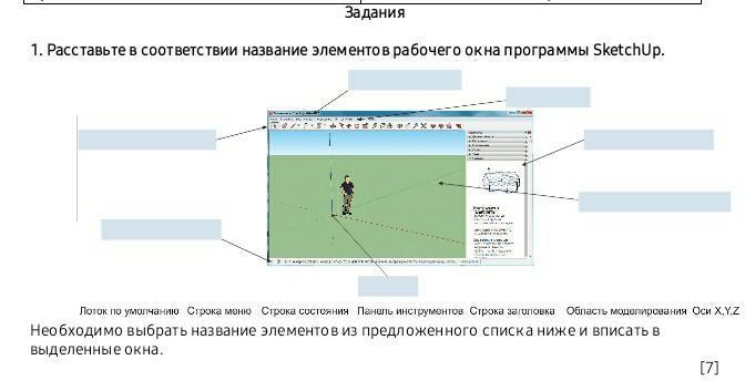 Расставьте в соответствии название элементов рабочего окна программы Sketch Up помогите пожалуйста по информатике