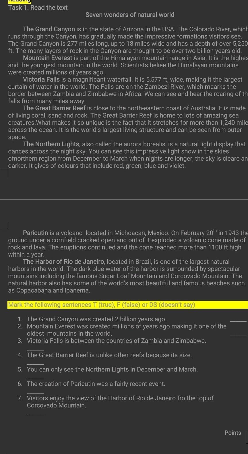 Ответ:1 (T); 2 (T); 3 (T); 4( F); 5 (T); 6(DS); 7(F)