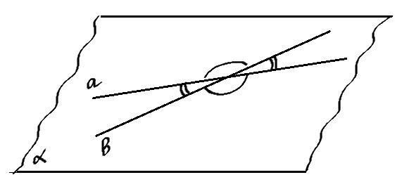 Любые две пересекающиеся прямые лежат в одной плоскости и образуют четыре неразвернутых угла.