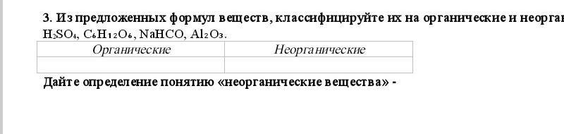 3. Из предложенных формул веществ, классифицируйте их на органические и неорганические.