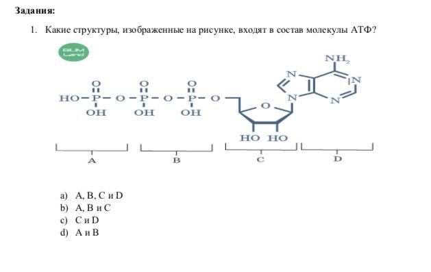 Какие структуры, изображенные на рисунке, входят в состав молекулы АТФ?