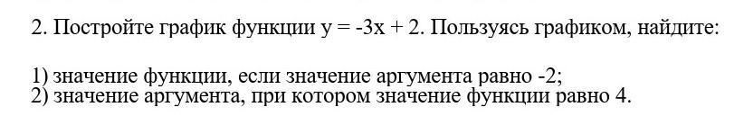 Постройте график функции у = -3х + 2. Пользуясь гра¬фиком, найдите: