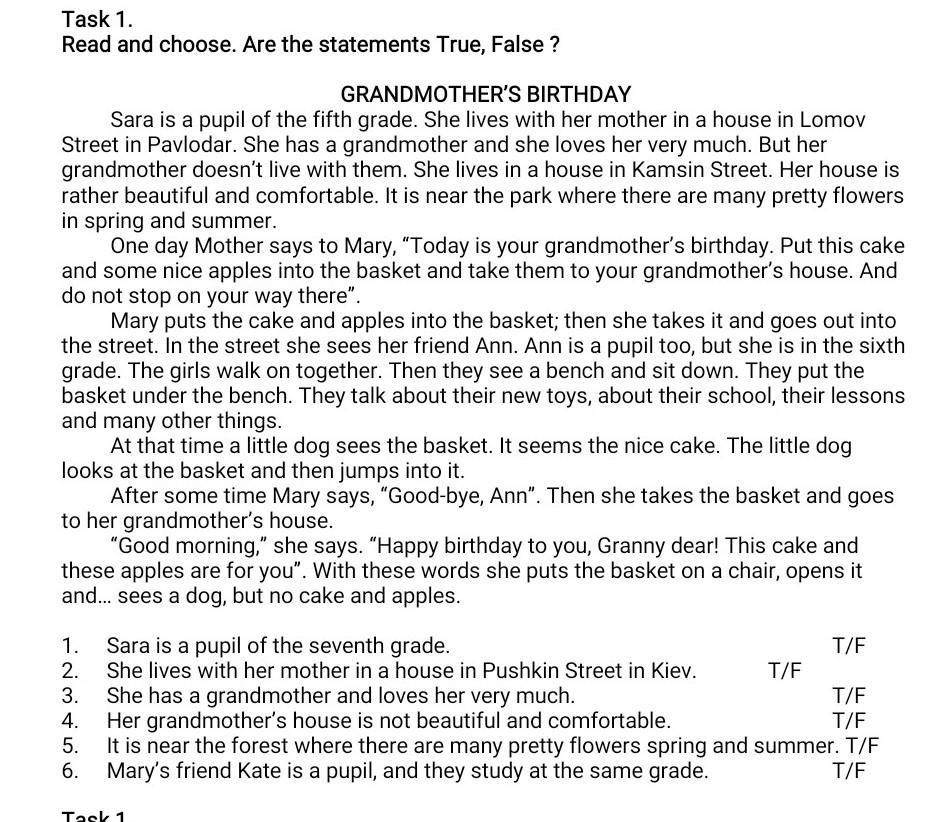 6. Mary’s friend Kate is a pupil, and they study at the same grade. T/F