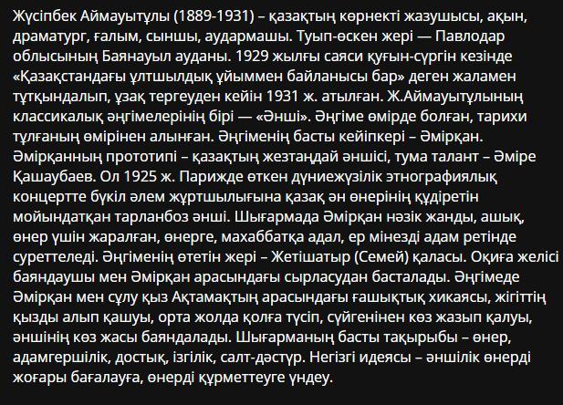 Мәтінді оқып, әңгіме кім жайлы жазылғаны жайлы қысқаша мәлімет жазып дәптерлеріңе жауабын сайтқа жүктеңіздер