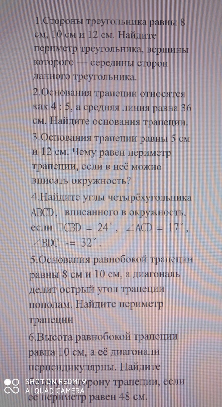 2. MN - средняя линия трапеции. MN=(ВС+AD)/2=36;
