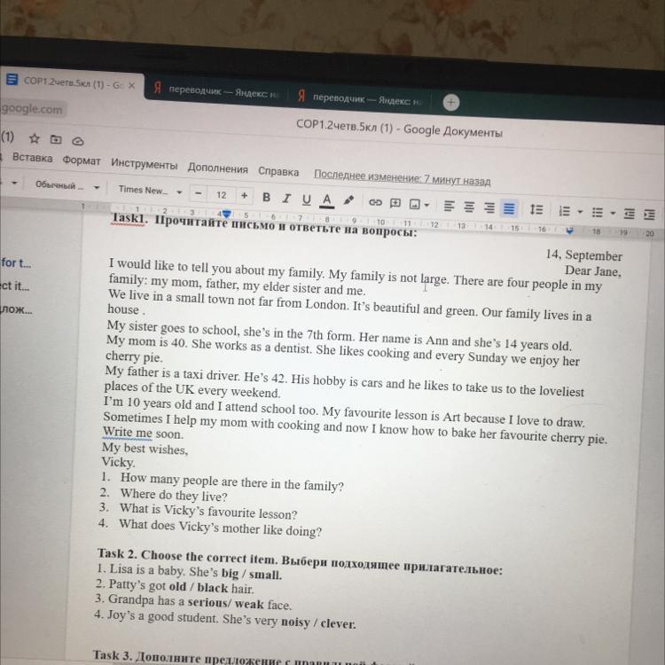 My sister goes to school, she's the 7th form. Her name is Ann and she's 14 years old.