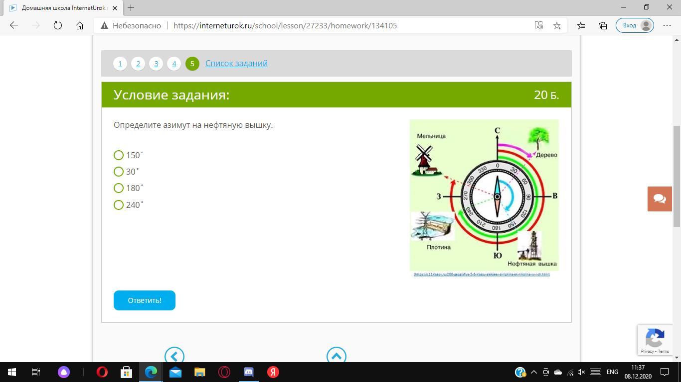Определите азимут на нефтяную вышку. 150˚ 30˚ 180˚ 240˚