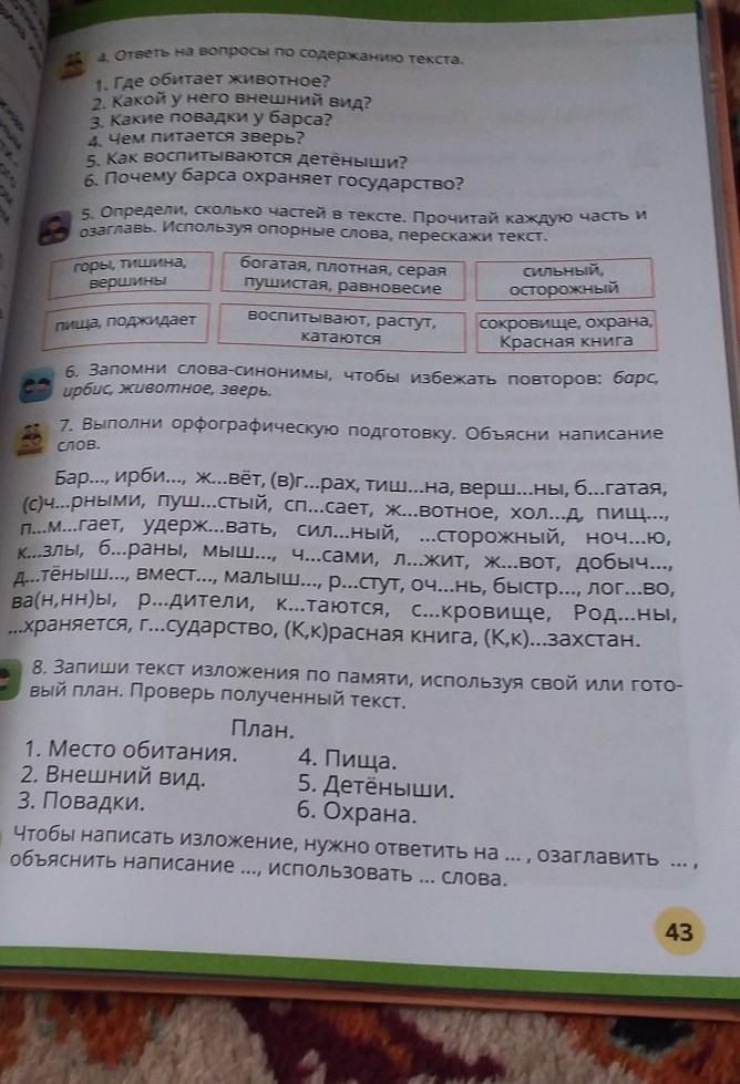 Баран,Ирби?,живёт в горах,тишина,вершины богатая, чёрными пушистый, спасает,животное,холод,пища помогает,удерживать сильный,осторожный ночью козлы,бараны,мыши,часами, лежит,живот,добыча,детёныш, вместе малыши, растут,очень быстро логово, ванны родители, катаются, сокровище,родины,сохраняются, государство,красная книга Казахстан
