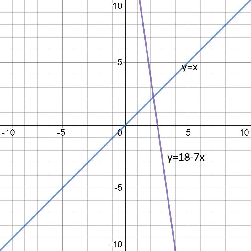 Постройте графики функции на одной координатной плоскости и определите точку пересечения с координатами y=-18-7c и y=x