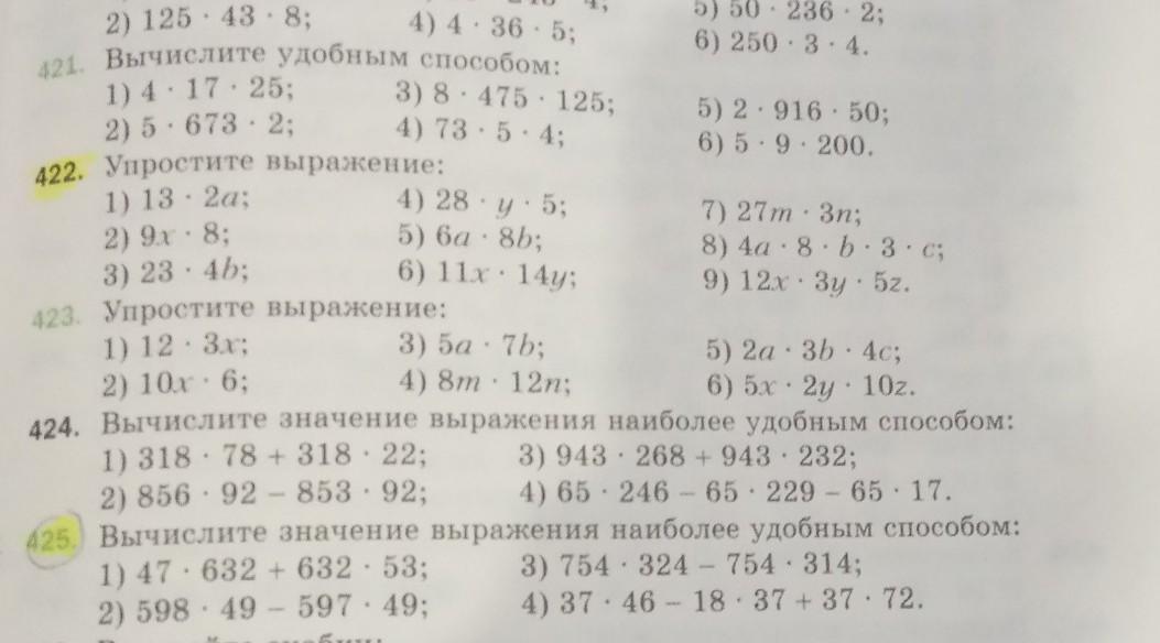 №421. 4×17×25=4×25×17=100×17=1700. 5×2×673=10×673=6730. 8×475×125=8×125×475=1000×475=475000